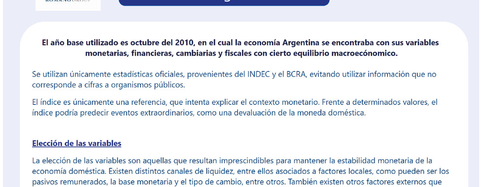 Este es un índice de actualización mensual, cuyo mes y año de base es octubre de 2010, con estadísticas oficiales del INDEC y el BCRA. Se construye a partir de distintas variables económicas en términos locales y globales, consideradas “imprescindibles” para mantener la estabilidad monetaria de la economía doméstica: